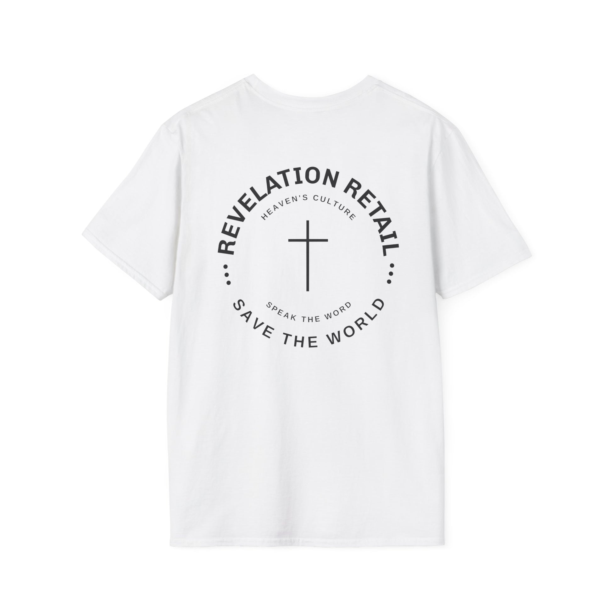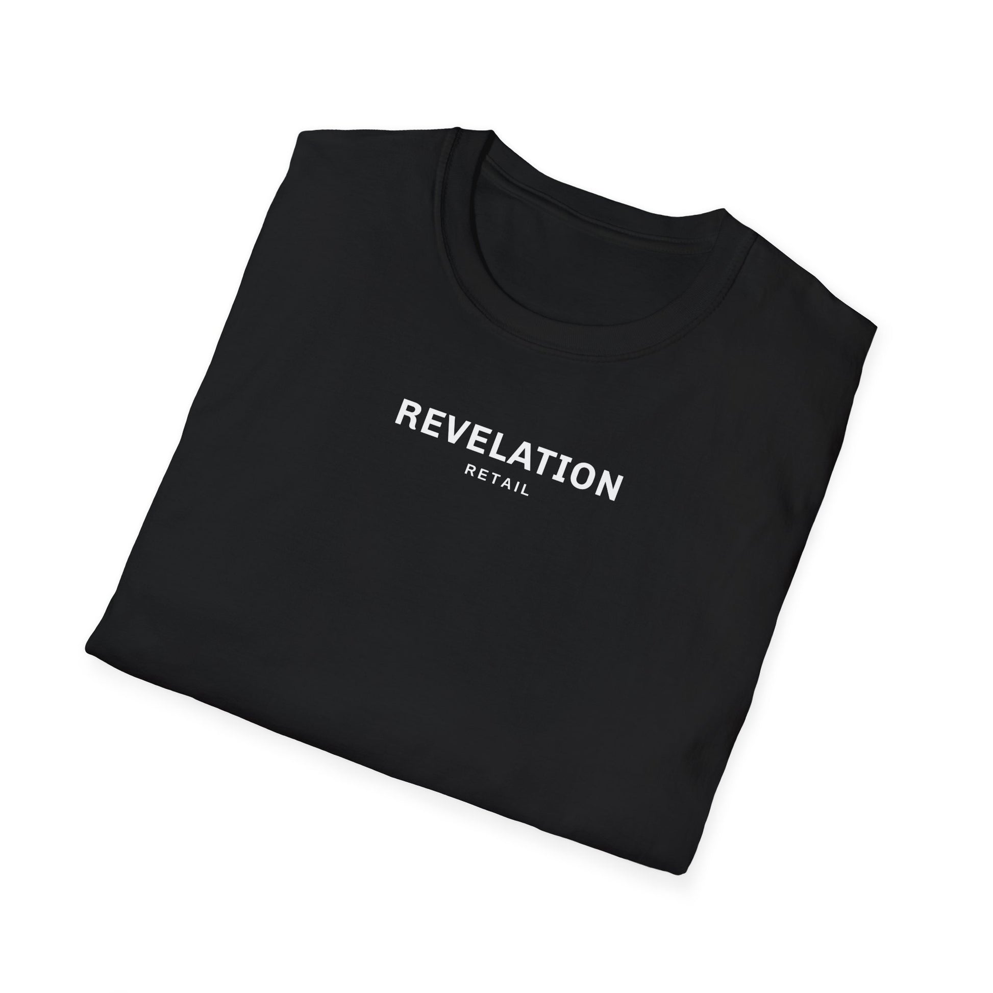 This minimalist white tee features our signature REVELATION RETAIL mark on the front — clean, modern, ready for daily wear.