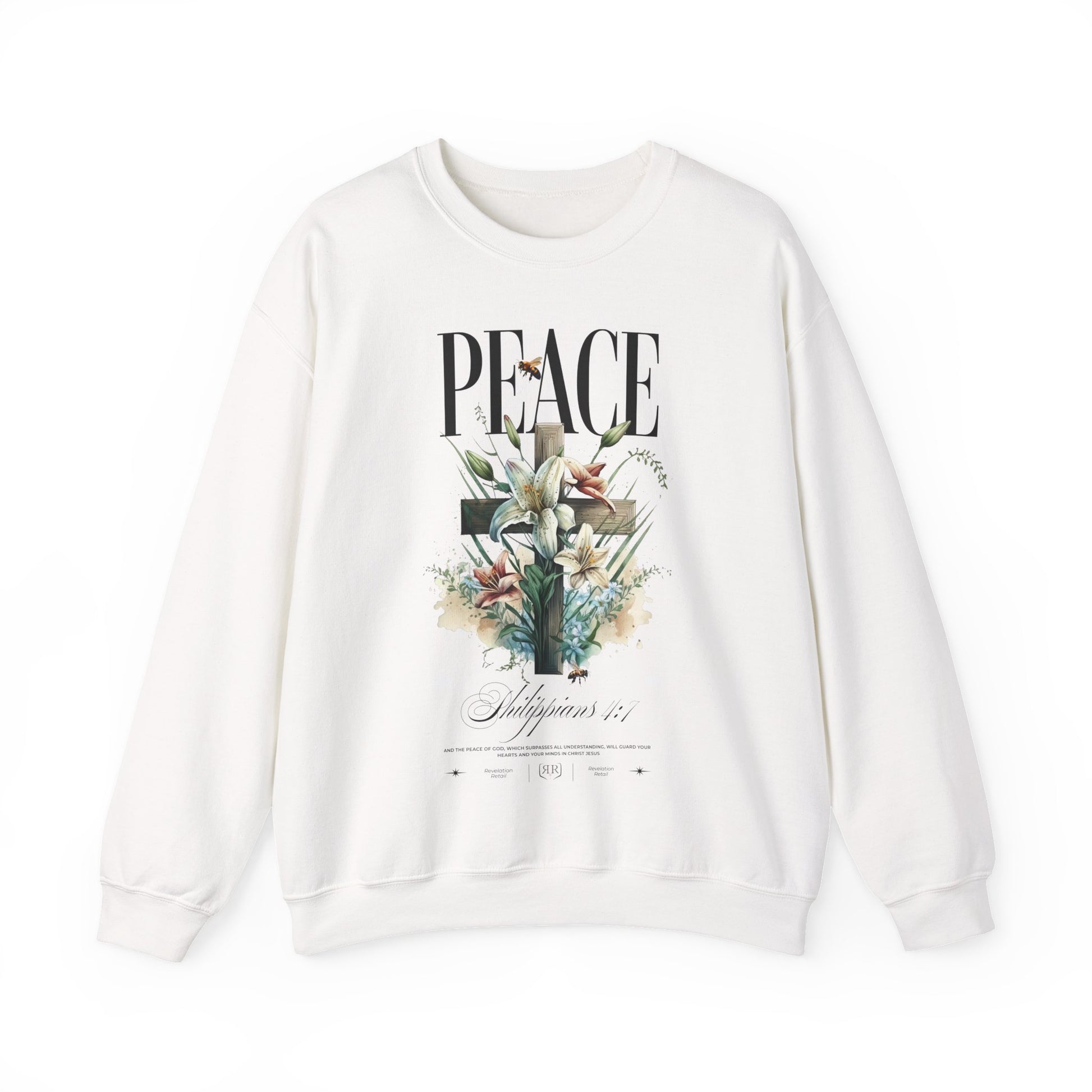 This soft white tee features a blooming cross and watercolor florals — a symbol of the peace that grows from the Gospel. Elegant typography meets a verse that comforts hearts in every season: